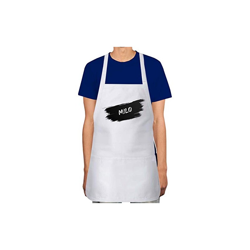 Makoroni - Milo Name Apron Adjustable Kitchen Chef Apron with 2 Pockets Cooking Baking, DesT83