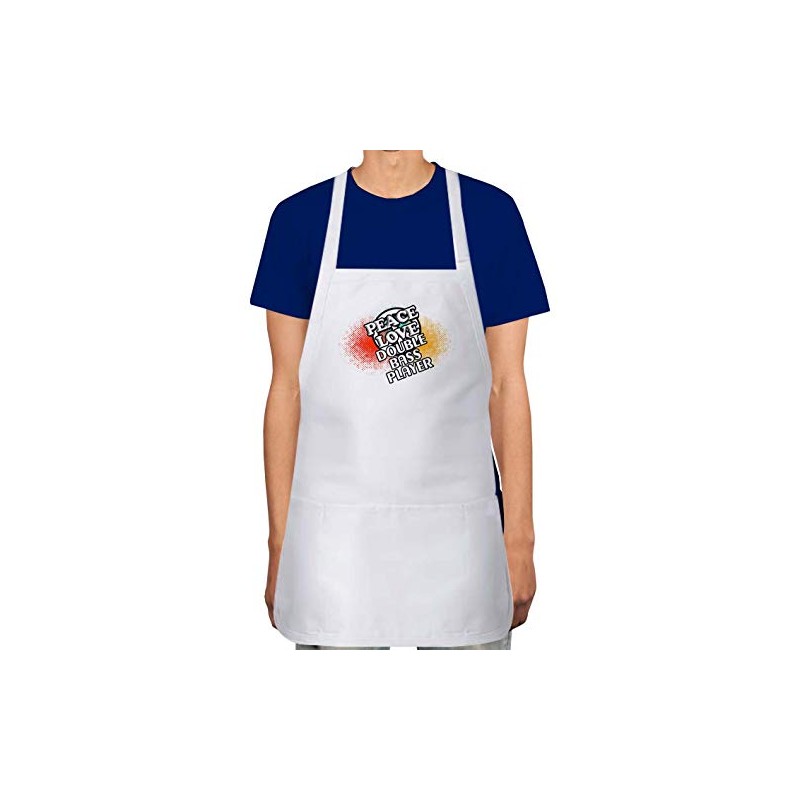 Makoroni - PEACE LOVE DOUBLE BASS PLAYER Apron Adjustable Kitchen Chef Apron with 2 Pockets Cooking Baking, DesW5