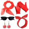 Makoto Nobu 5 PCS 50s Fancy Dress Kit,1950s Costume Accessories, Cat Eye Glasses,Polka Dot Bandana Tie Headband Earrings, Gloves,Fancy Dress for Women Ladies 1950s Retro Party Decor