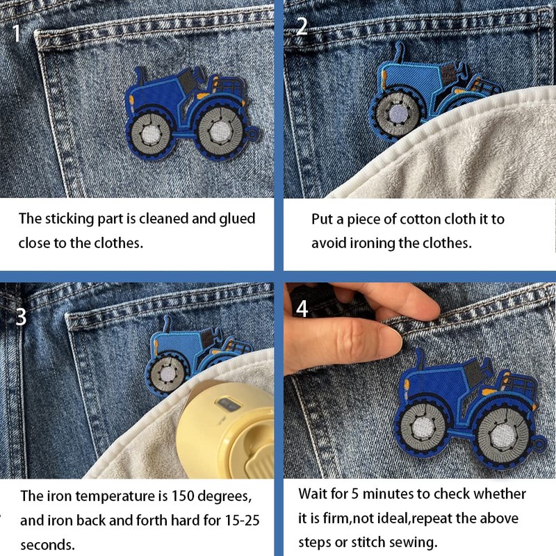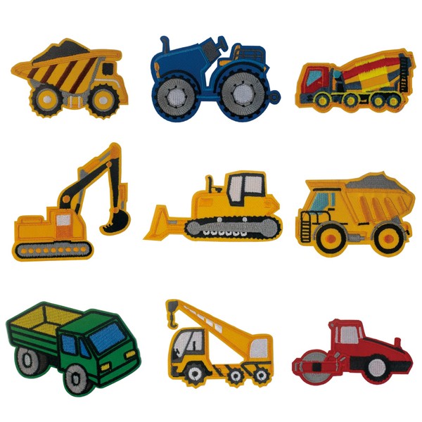 • 【PERFECT DESIGN】This patch set contains 9 products with different patterns. Patterns: Tractor, Bulldozer, Steamroller, Dump Truck, Excavator, Truck, Concrete Mixer Truck, Crane Truck.