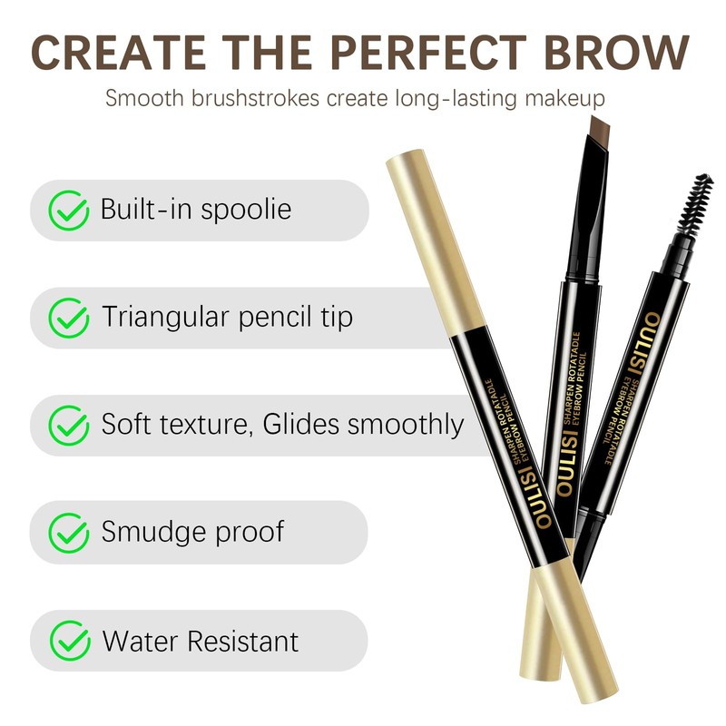 - 2-in-1 Triangle Design - Dual-ended with triangle-shaped retractable tip for effortless filling & sharp edges + spiral brush for blending & grooming. No sharpening needed—twist-up mechanism saves time and product.