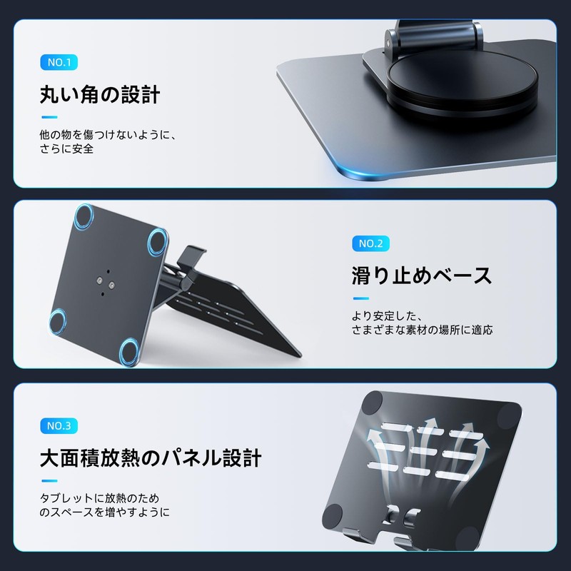 Makuseru Tablet Holder with 360° Rotation of Stability, Tablet Holder, Smartphone Stand, Tabletop, Mobile Stand, Stable, Cooling, Foldable, Anti-Slip, Adjustable Angle, Heat Dissipation, 4.4 lbs (2