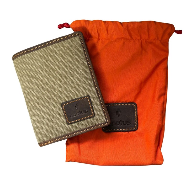 Mala Leather Canvas & Hunter Leather Note, Card & ID Holder – RFID Protected with 2 Note Sections, 6 Card Slots, 2 ID Windows – 10 x 10 x 2 cm Cactus (Khaki)