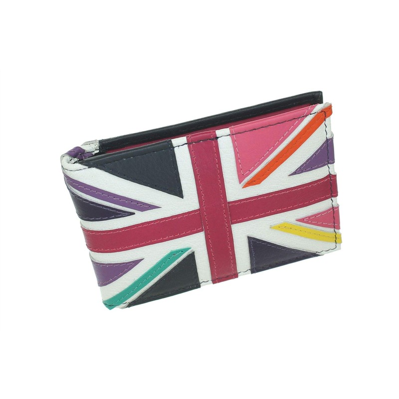 • Soft supple leather landscape credit card holder with colourful applique Union Flag detail 10cm x 7.5cm x 1.5cm.