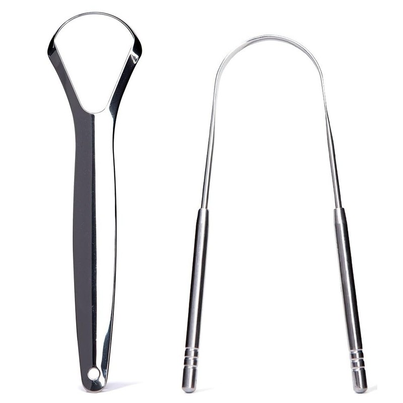 MalaMed | 2 Stück Zungenschaber, 1 x U-Form & 1 x Y-förmiger Metallschaber aus 100% Edelstahl, für Mundhygiene und frischen Atem | Einfach zu bedienender Reiniger für Erwachsene