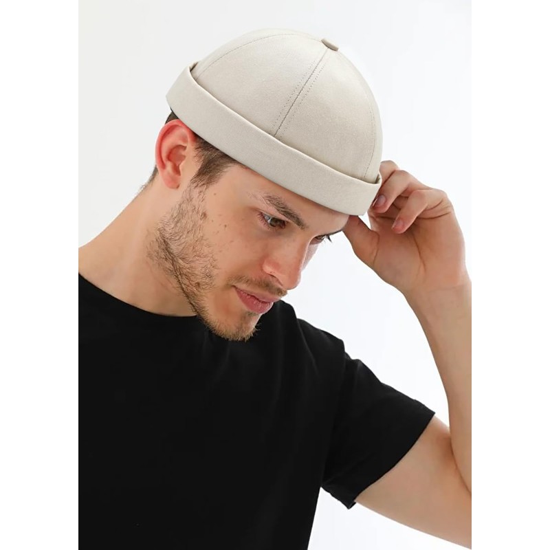 - Unique Design: Unisex. All Seasons. Design with unique brimless docker cap, it has the form of a regular baseball cap which removes brim so it can be styled like Beanie. The brimless hat's simple design makes it easy to combine with any outfit