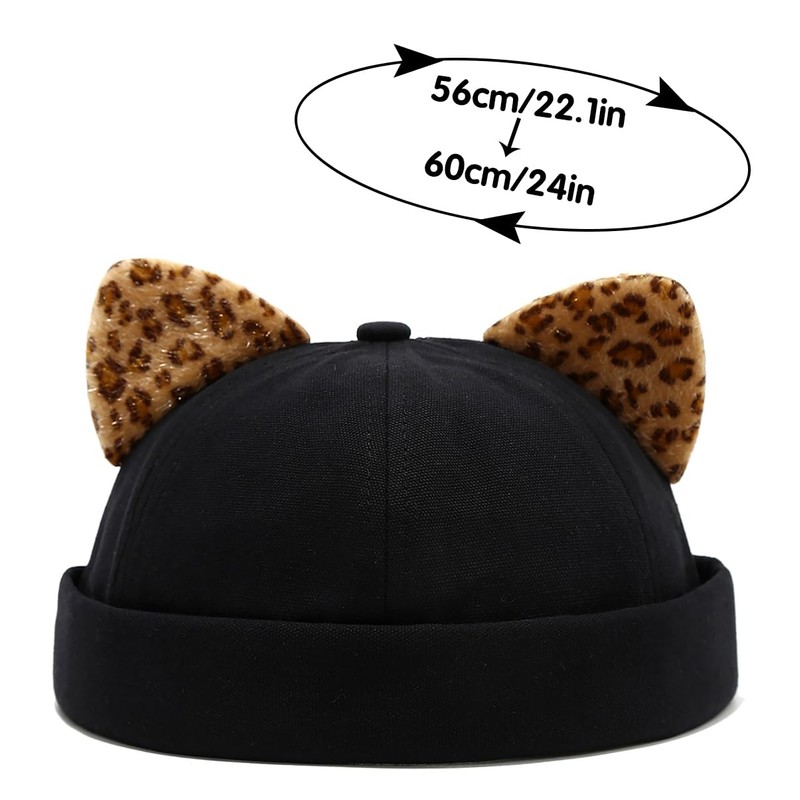Malaxlx Black Cat Ear Docker Cap – Brimless Sailor Beanie with Leopard Ears Skull Cap for Women Men