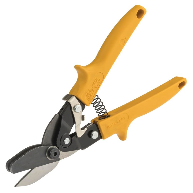 The Max2000 Double Cut Snip employs a best of all worlds with a close tolerance design for consistent performance . A curved cutting edge on the center jaw reduces cutting force required and large relief grinds on all jaws minimize drag. The double cut blades feed smoothly, cuts cleanly without surface distortion and easily navigate metal seams encountered in round metal duct and stove pipe. A self-starting point on the center jaw makes short work of blind cuts.