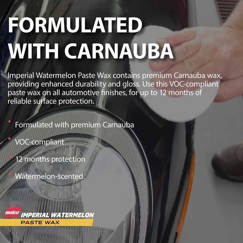 Malco VOC Compliant Imperial Paste Wax, Watermelon Scent – Creates High Gloss Finish/Provides Durable Protection/Premium Wax for Use on Fiberglass, Gel Coat and Painted Finishes / 14 Oz. (125214)