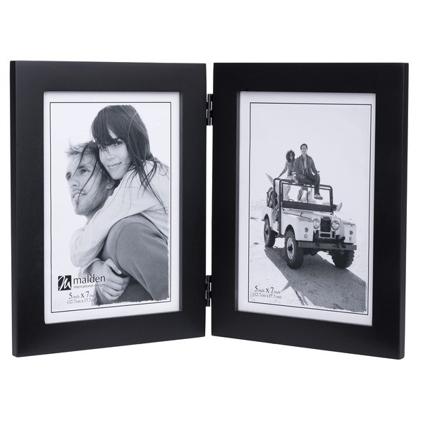 Malden Double Vertical 5x7 Picture Frame - Wide Real Wood Molding, Real Glass - Black
