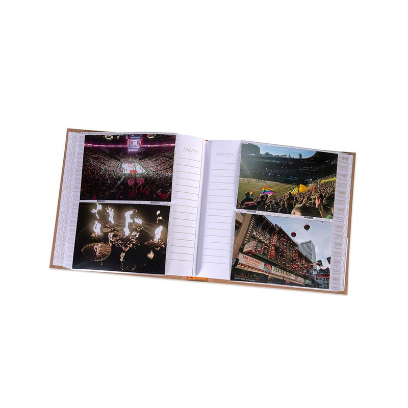 - RUSTIC LOOK: Tan; Book-bound album; Holds (160) 4” x 6“ horizontal photos (2-up on a page); Features memo writing area on each page; Cover opening is 4.5“ x 3.0 for a 5” x 3½” photograph; Product Dimensions: 8.75” (W) x 8.75” (H) x 1.77” (D)