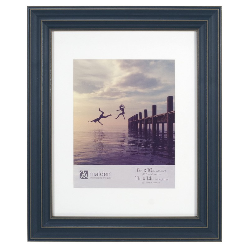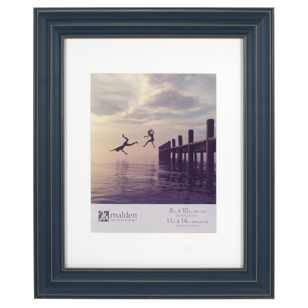 - ALLURING LOOK: Blue frame with white beveled mat; holds an 8x10 inch photo in a 7.5x9.5 inch mat opening; holds an 11x14 photo without the mat; distressed finish on edges in wood tone; vertical or horizontal photos; Dimensions: 14.5” (W) x 17.25” (H) x 0.625” (D)