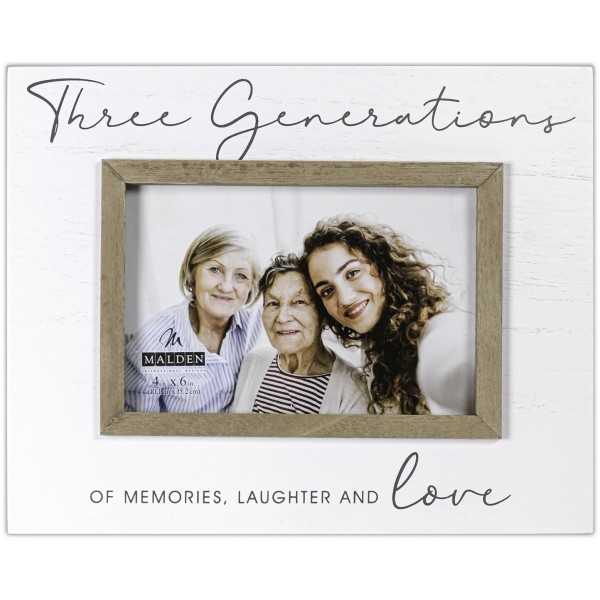 STYLISH APPEARANCE: This decorative frame features a raised, brown inner wood moulding and the phrase “Three Generations of memories, laughter and love” screen printed in stylish fonts. Product Dimensions: Approximately 9.5” (W) x 7.5” (H) x 1” (D).