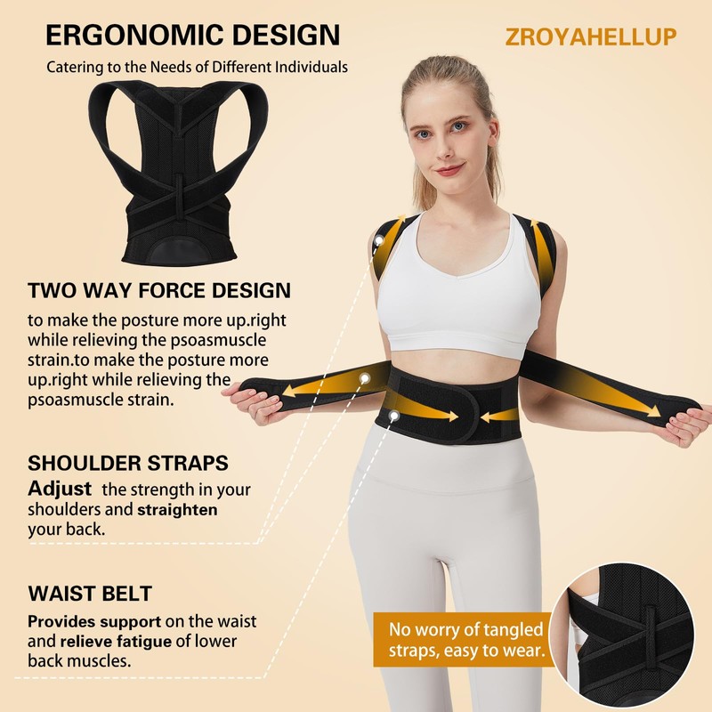 - 【Pain Relief】 Follow the scientific concepts of ergonomics, BraceTop posture corrector provides 3 in 1 support to straighten your back, chest and shoulder to keep your body in the correct position. By correcting your posture, our posture effectively relieve back pain, neck pain, lumbar pain and back problems such as humpback, kyphosis,