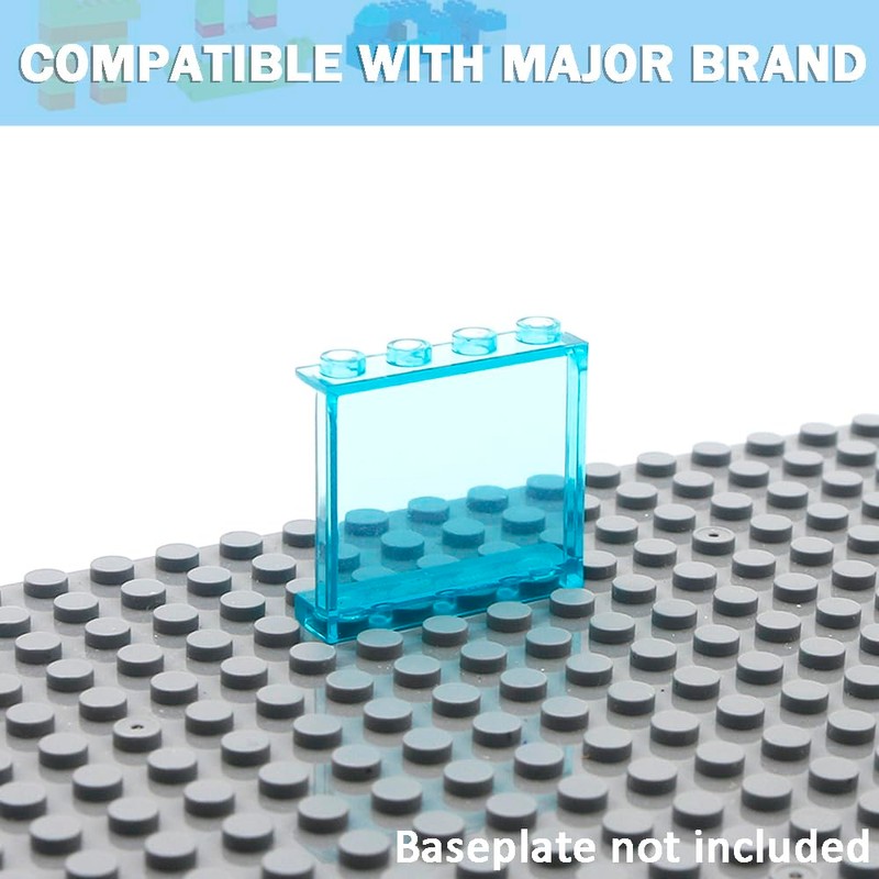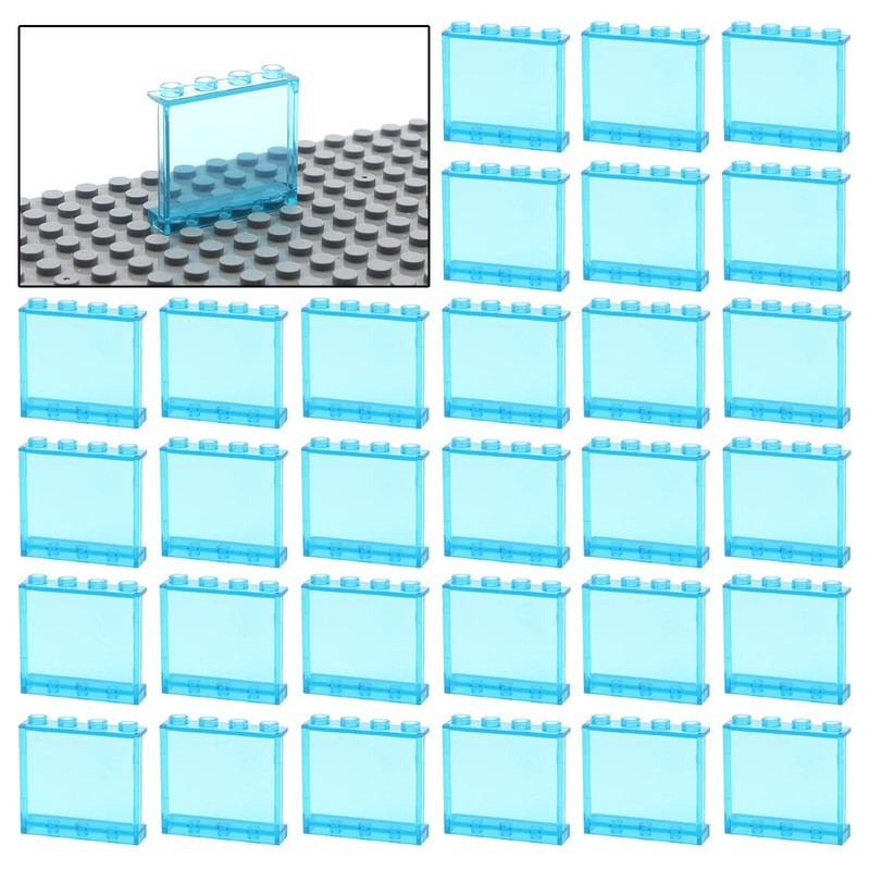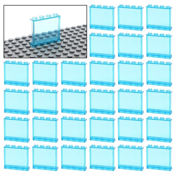 MALEKO Transparent Clear Window House Building Bricks, Classic Flat Plates Pieces and Parts Block Compatible with Major Brands (Blue 30pcs 1x4x3)