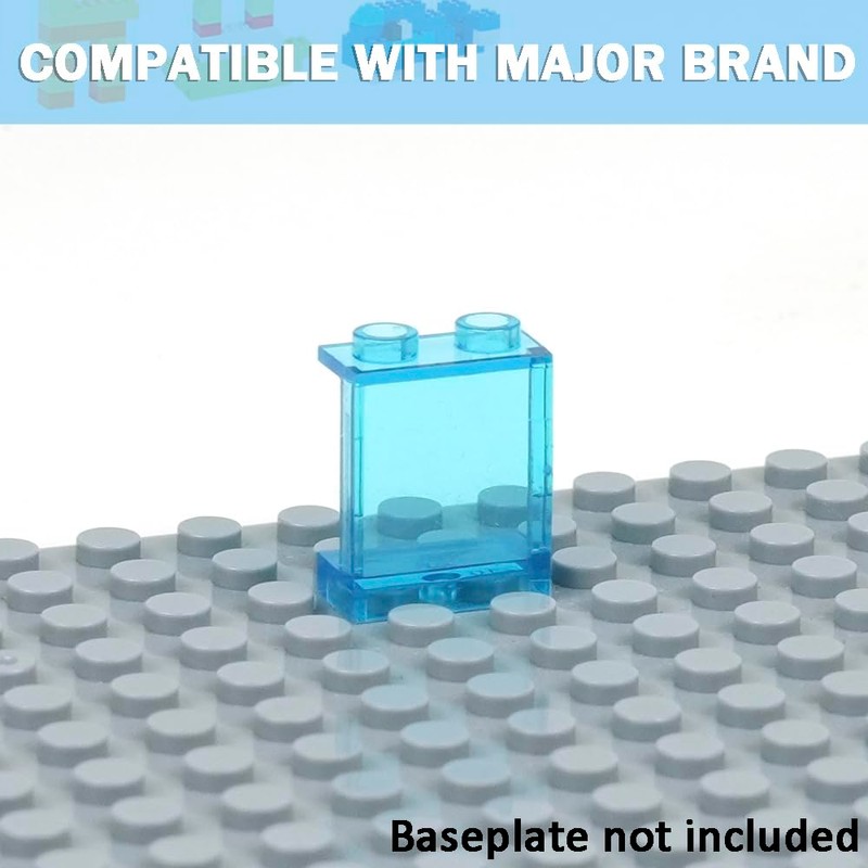 MALEKO Transparent Clear Window House Building Bricks, Classic Flat Plates Pieces and Parts Block Compatible with Major Brands (Blue 50pcs 1x2x2)