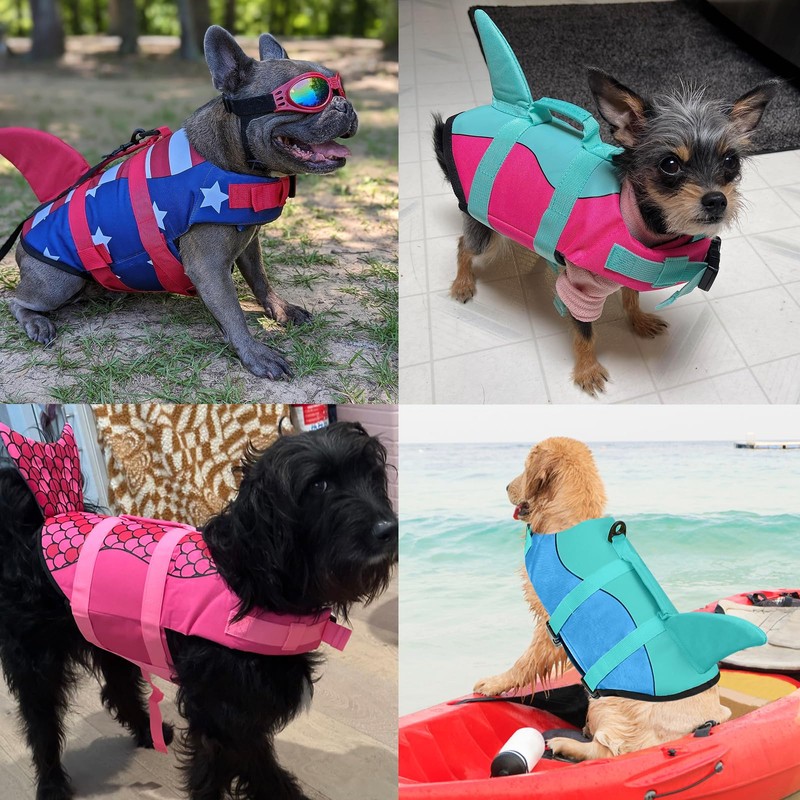 - 【Shark Dog Life Jacket】Our dog life jackets are designed with shark shapes, adding a “cute” element to this dog life vests for swimming device. Fun shark shape and bright colors to provide higher visibility in the water. At the same time, attractive styles will make your dog a star when experiencing water sports