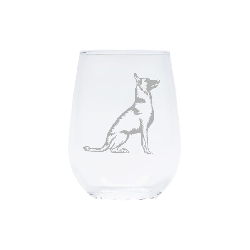 Malinois (M2) themed, dog stemless wine glass, 17 oz.