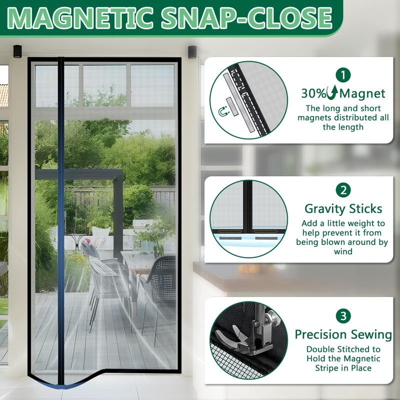 - Imanes automáticos instantáneos: diseñado con tiras magnéticas largas y cortas estratégicamente colocadas, nuestra pantalla de puerta de malla con imanes se cierra automáticamente, incluso con niños/mascotas corriendo a través Mantiene las plagas fuera, disfruta de un aire fresco