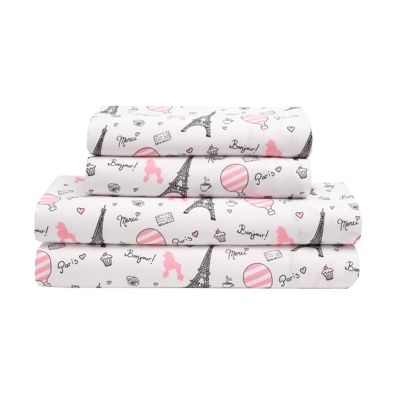 MALLARY BY MATTHEW Kids Super-Soft 100% Microfiber Print Sheet, Bonjour Paris, Queen
