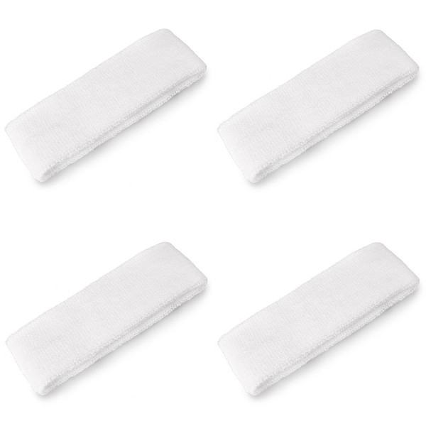 Mallofusa 4PCS Cotton Basketball Sweat Headbands Sports Head Sweatbands Yoga Volleyball Tennis Athletic Activities White