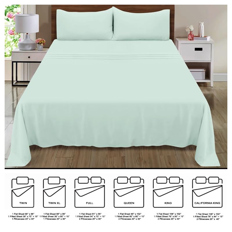 MALLONI HOME Cal King Sheet Sets - Double Brushed Microfiber Bedding Sets, 4 Piece Deep Pocket Bed Sheets Sets, Ultra Soft, Wrinkle Free, Quick Dry, Easy Care California King Sheets - Sea Green