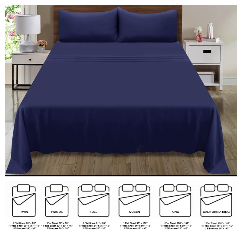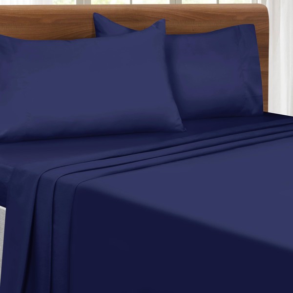 Malloni Home King Sheet Set - Double Brushed Microfiber Bedding - King Size, 4 Piece Deep Pocket, Ultra Soft, Easy-Fit, Wrinkle Free, Quick Dry, Easy Care - Navy Blue