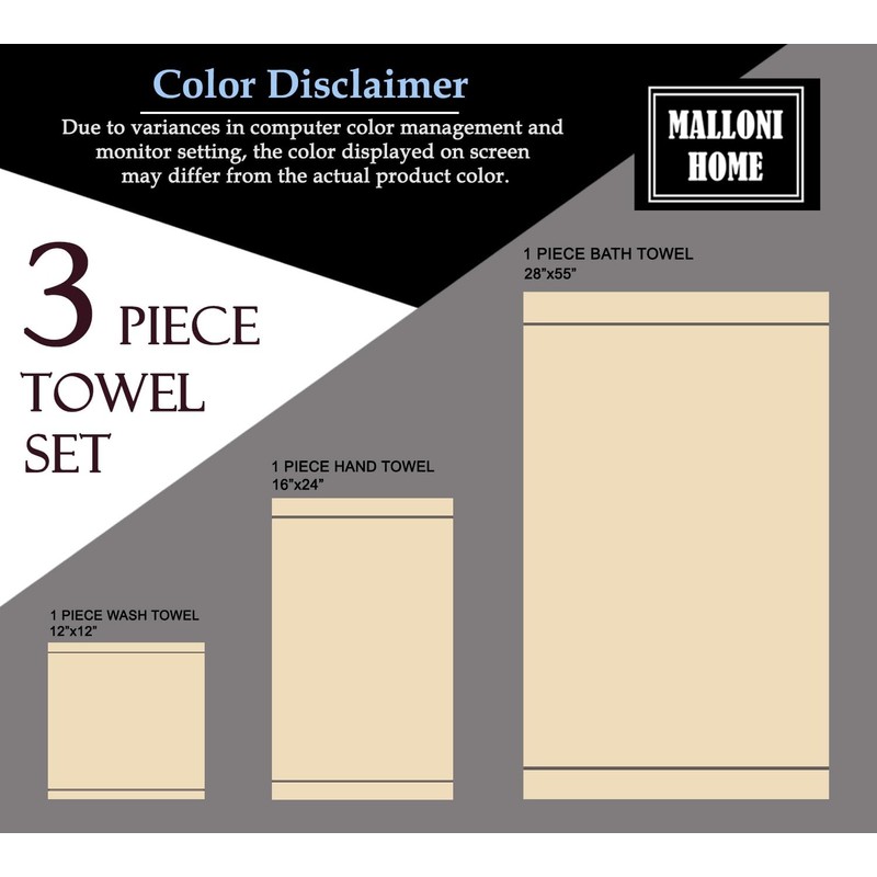 MALLONI HOME Ultra Soft 3 Pack Cotton Towel Set, Contains a Bath Towels 28x55 inch, a Hand Towels 16x24 inch & a Wash Coths 12x12 inch, Ideal Everyday use, Compact & Lightweight - Black