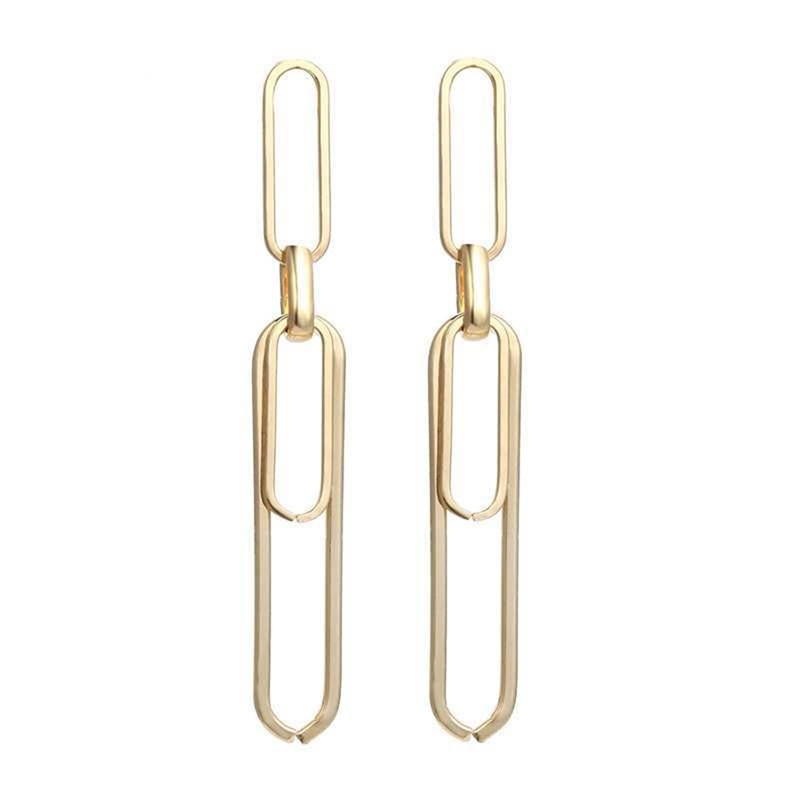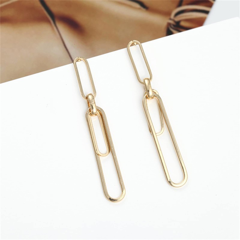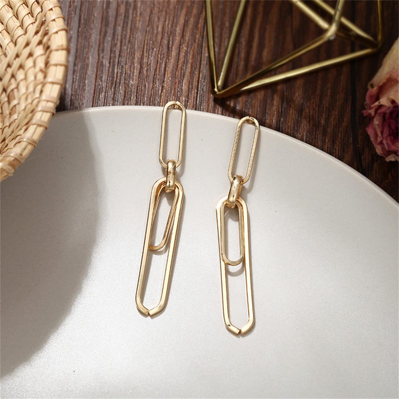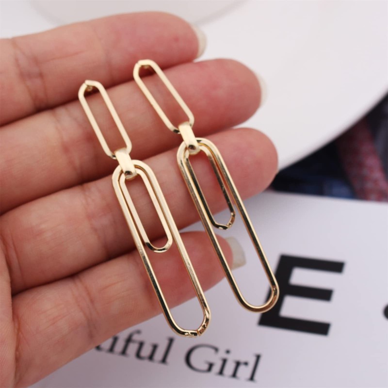 MALOYANVE Paperclip Earrings for Woman Exaggerated Long Punk Cool Gold Silver Plated Interlocking Punk Geometric Drop Dangle Pin Earrings Minimalist Retro Link Chain Hoop Earrings (Gold)