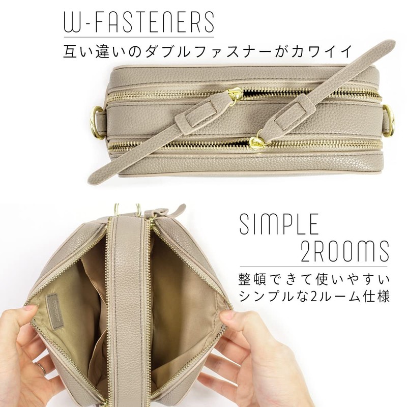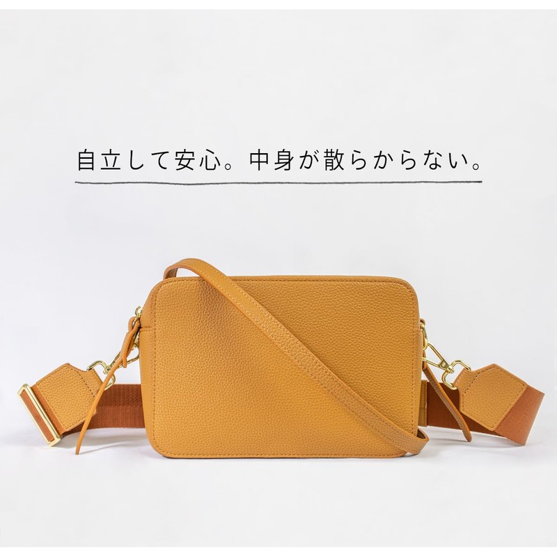 MALTA Women's Shoulder Bag, Cross-body Design, Double Zipper, 2-Way Strap, Wide Wide, Reduces Strain, Smaller, Large Capacity, Lightweight, Bag, Camel