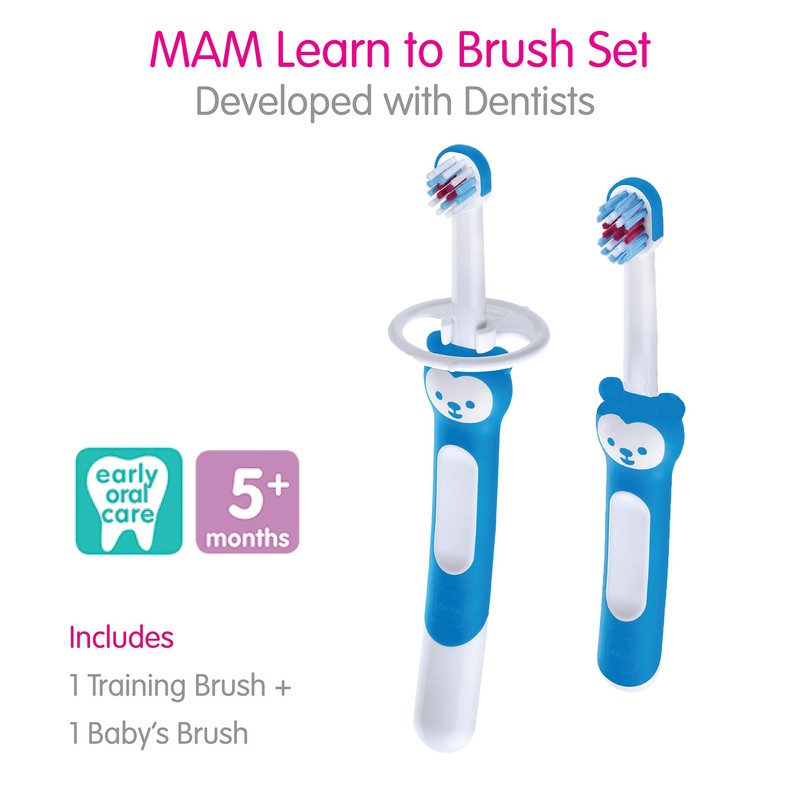 • PRODUCT DETAILS - MAM Baby's Brush set, Boy, 5+ Months, 2-Count, Blue, Oral Care for Toddlers, Baby Training Toothbrush