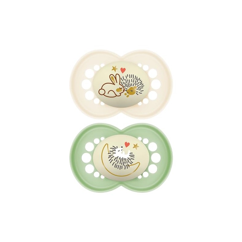 MAM Original Night Dummy Set of 2, Rubber with Dummy Box, 16+ Months, Neutral