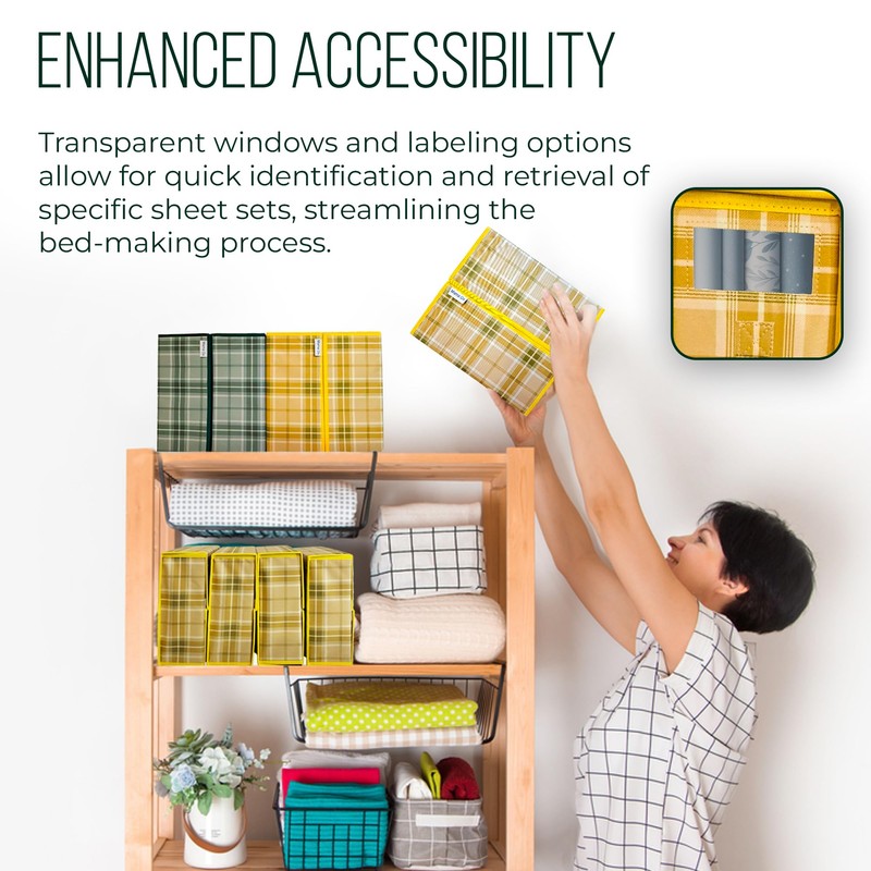 • Streamlined Linen Closet Storage with Label & Window – Simplify your linen closet storage with clear windows and writable labels that let you identify contents at a glance. Organize by size or set for quick access.