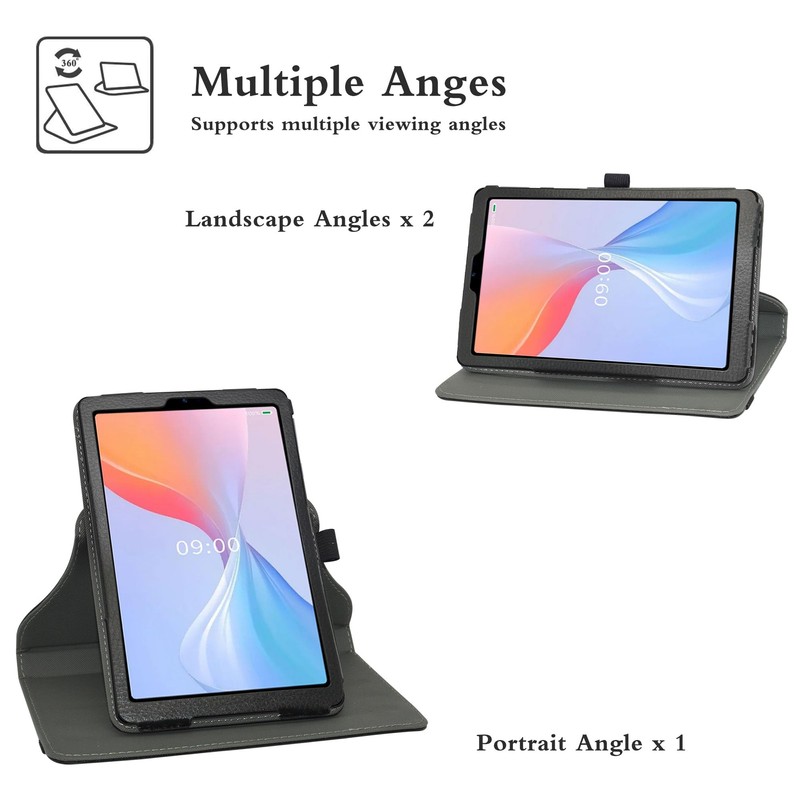 360 degrees rotating swivel allows the tablet to rotate both vertically and horizontally with ease while in the case.
