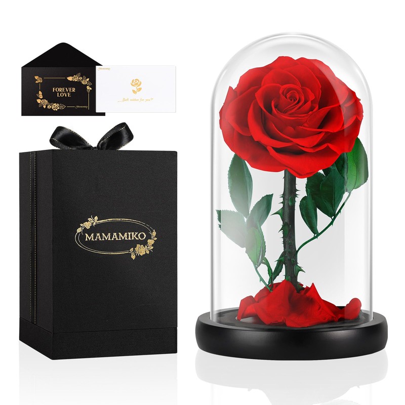 MAMAMIKO Forever Real Rose in a Glass Dome,Eternal Red Roses Flowers Preserved for 5 Years,Rose Gifts for Her Woman Wife Girlfriend on Birthday, Anniversary, Valentine's Day, Mother's Day, Christmas