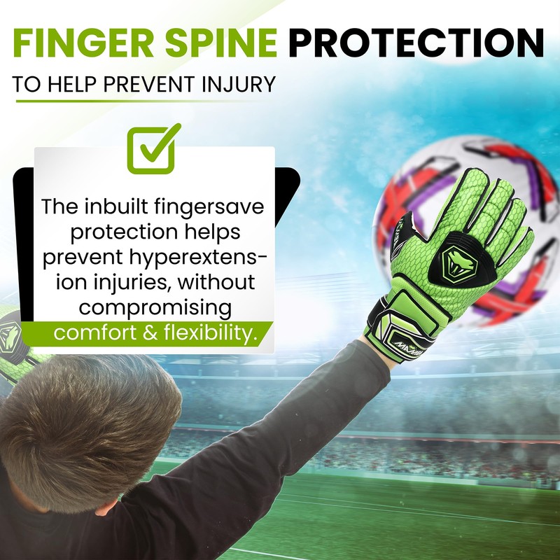 - Finger back protection to avoid injury: the built-in finger guard prevents overextension damage without compromising comfort and flexibility. The MAMBA goalkeeper gloves are made for maximum performance in training and in the game.