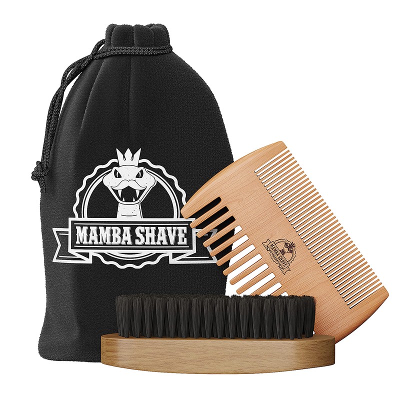 Mamba Shave Kit de Peine y Cepillo para Barba. Rattle Set con Cepillo de Cerdas Naturales de Jabalí y Peine de Madera para peinar Cabello, Barba y Bigote. Beard Wooden Comb and Brush Kit.