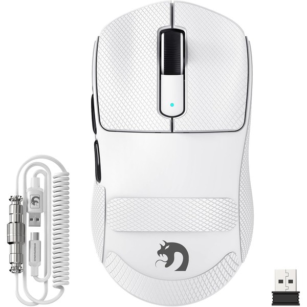 MAMBASNAKE M3 Wireless Gaming Mouse with Lightweight 39g,PixArt PAW3395 PRO Sensor 40K DPI,Tri Mode-2.4G/Bluetooth/Wired,100M Clicks Micro Switch,Coiled Cable,Programmable for Win PC Mac(White Tape)