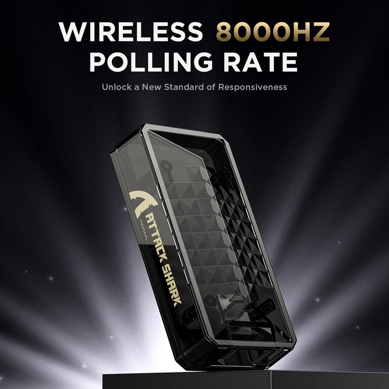 - PAW3950MAX Sensor & Nordic 52840 Chipset: Equipped with PixArts PAW3950MAX, the X8Ultra offers up to 42,000 DPI, 8000Hz polling rate, 750 IPS and 60G acceleration - for pixel-accurate precision. The Nordic 52840 chip ensures extremely low latency and lightning-fast response. In Hunting Shark Mode, the mouse reaches an impressive 20,000 FPS for error-free tracking at the highest speed.