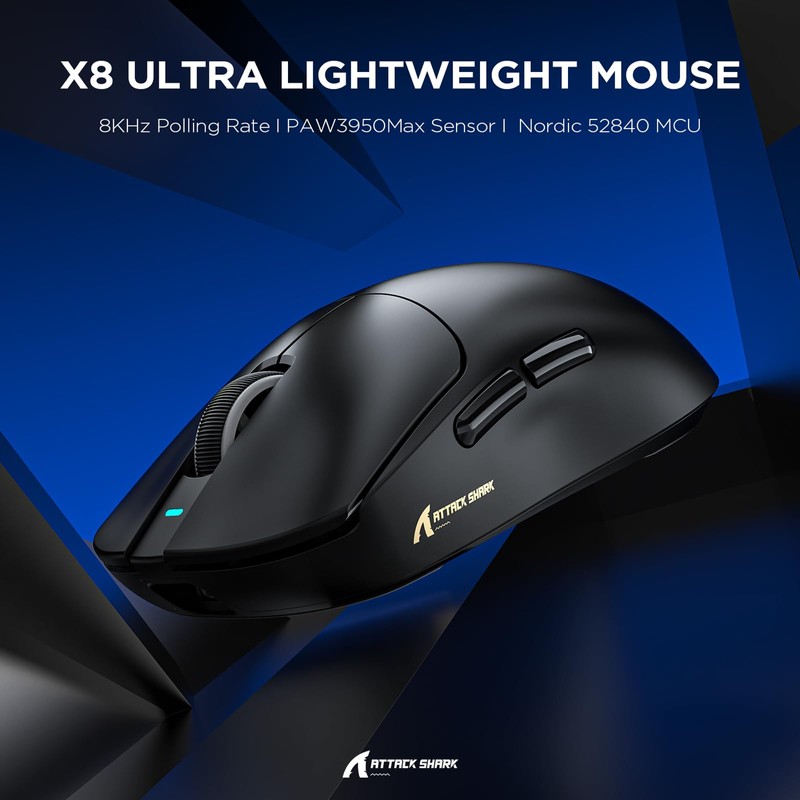 - PAW3950MAX Sensor & Nordic 52840 Chipset: Equipped with PixArts PAW3950MAX, the X8Ultra offers up to 42,000 DPI, 8000Hz polling rate, 750 IPS and 60G acceleration - for pixel-accurate precision. The Nordic 52840 chip ensures extremely low latency and lightning-fast response. In Hunting Shark Mode, the mouse reaches an impressive 20,000 FPS for error-free tracking at the highest speed.