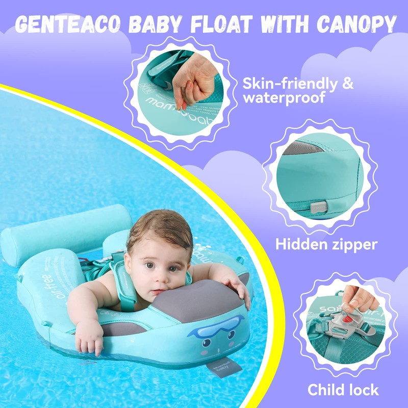 GENTEACO Mambobaby Baby Swim Float with Canopy Non-Inflatable Infant Pool Float with Tail 3-24 Months Avoid Flip Solid Skin-Friendly Material for Toddler Boys Girls(Deluxe Edition Green)