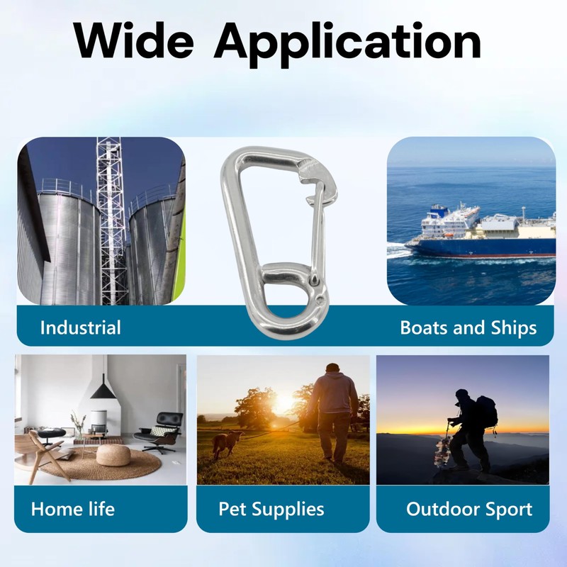 Product Description: The MAMDAFAON Spring Hook Carabiner is your ultimate tool for effortless organization and security in both outdoor adventures and daily life. Crafted from rugged 304 stainless steel, this snap hook combines industrial-grade strength with a sleek, corrosion-resistant finish, ensuring it withstands saltwater, rain, and heavy loads without rusting or weakening.  Easy to Use, Built to Last Featuring a spring-loaded quick-release mechanism, this carabiner effortlessly clips onto ropes, bags, tools, or gear with one hand. Its smooth edges and secure locking system eliminate frustration and accidents, while the lightweight design ensures portability. Whether you’re anchoring a boat, securing climbing gear, organizing keys, or towing equipment, this hook adapts seamlessly to your needs.  Why Choose MAMDAFAON - Trusted by outdoor sports enthusiasts for reliability in extreme conditions. - Backed by a lifetime warranty against defects. - Compact, multi-functional, and built to simplify your toughest tasks.  Upgrade your gear with the Spring Hook Carabiner – where durability meets everyday convenience!