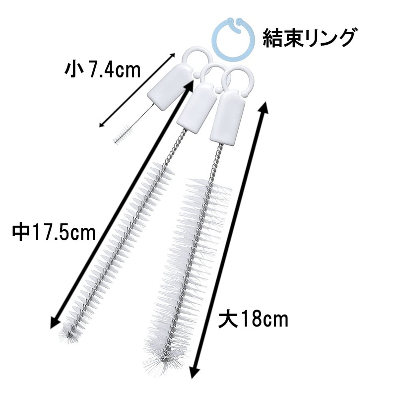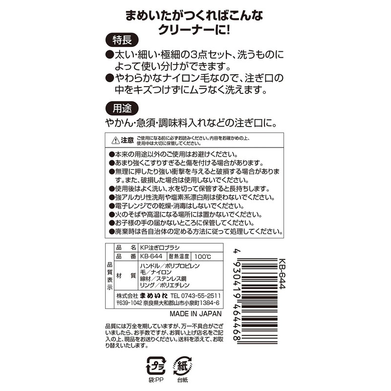 Mamei KB-644 Kitchen Brush, White, Large, Width 1.0 x Depth 1.0 x Height 7.9 inches (2.5 x 2.5 x 18 cm), Medium: Width 0.6 x Depth 0.6 x Height 6.9 inches (1.5 x 1.5 x 1.8 x 7.4 cm), Kitchen Clean Pro Cookware, Spout, Wash, Kettle, Seasoning, Washable, B