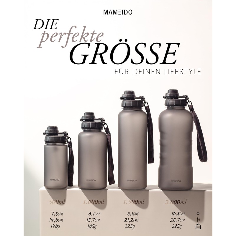 - Sufficient drinking – drinking bottle with straw in 4 different sizes for every liquid need, drinking goals easily achieve with practical time marking, beautiful water bottle 1 litre in many designs.