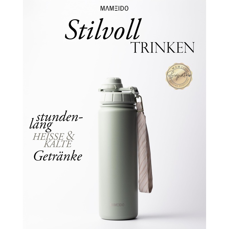 - Anywhere – whether as a thermal bottle, drinking bottle with straw or gym bottle – with the fashionable carrying strap, innovative lid, stylish design, sufficient drinking in everyday life or during sports is child's play.