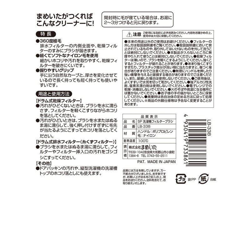 Mameita LB-338 Washing Machine Filter Brush, White, Made in Japan, Drainage and Drying Filter, Dust Remover, Width 1.4 x Depth 1.4 x Height 8.9 inches (3.5 x 3.5 x 22.5 cm)