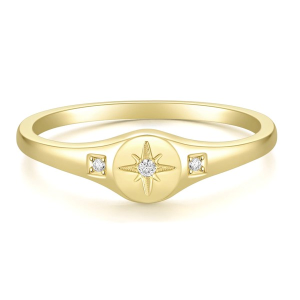 Mameloly 14K Gold Plated CZ Wedding Bands for Women Stackable North Star Signet Ring Dainty Statement Rings for Her Size 3