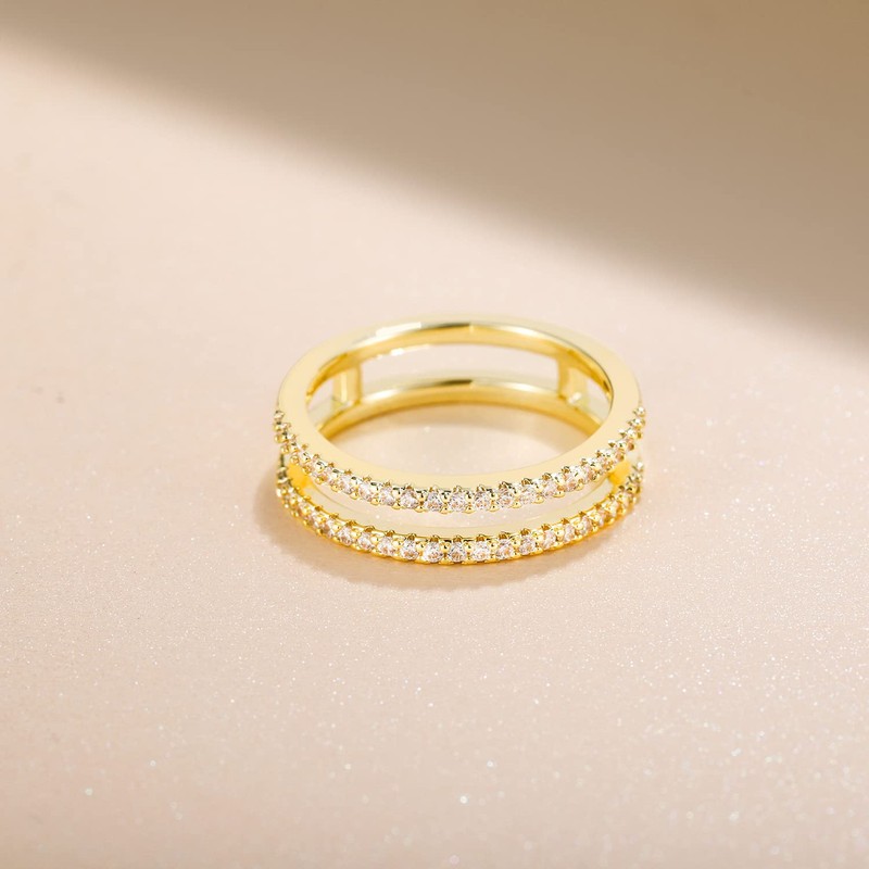 Mameloly Wedding Bands for Women Gold Dainty CZ Cubic Zirconia Half Eternity Stackable Engagement Enhancer Guard Double Ring Size 6.5