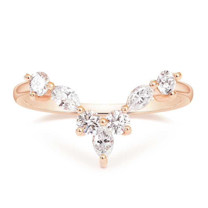 Mameloly Wedding Bands for Women Marquise & Round Shaped Rose Gold Stackable Cubic Zirconia CZ V Shape Curved Engagement Rings for Her Size 8.5