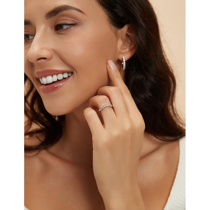 • Design: Seven round stone. Brilliant stacking half eternity wedding band. Dainty silver ring, comfortable to wear as an everyday ring